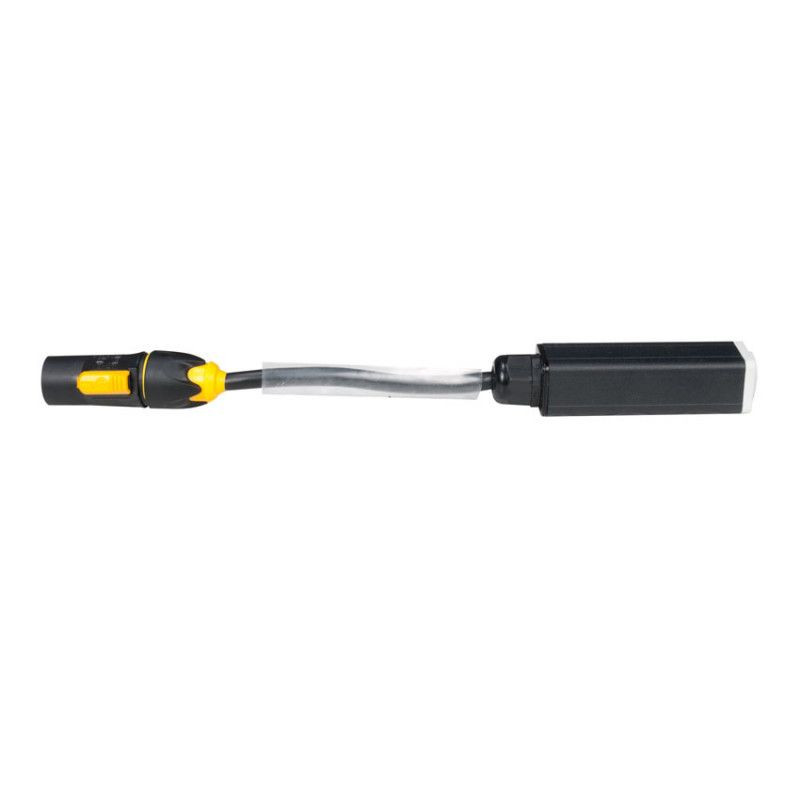 The SIP1PCOA is a 1FT (0.3m) 12AWG, IP65 locking power connector to standard locking power connector output power adapter. This adapter was designed for production use and for those who already own standard locking power connector cables and extensions who aren't ready to invest into IP65 locking power connector cables and extensions.