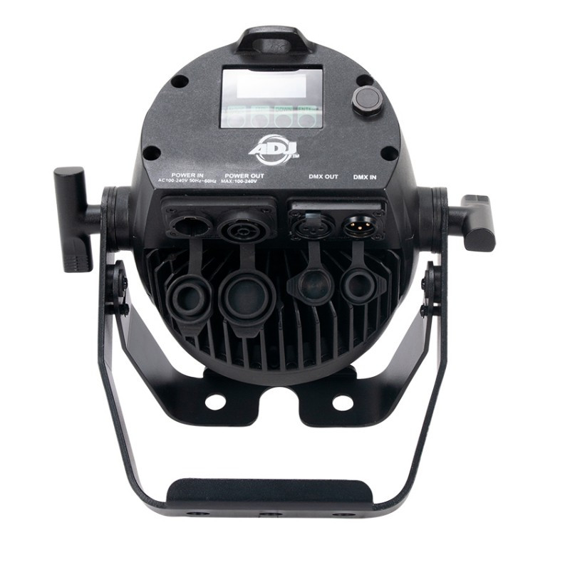 The ADJ 7P Hex IP is a versatile IP65 outdoor rated Par with 7 x 12-Watt (6-IN-1 HEX) LEDs. With a 30-degree beam angle, users may produce wide washes with smooth color mixing from 63 built-in color macros utilizing red, green, blue, amber, white and UV LEDs. Not only is this LED Par great for lighting indoor stages and venues, but with IP 65 rating, it is a great solution for temporary outdoor lighting of stages or events. The IP 65 rating helps protect the fixture from rain, snow and dust.