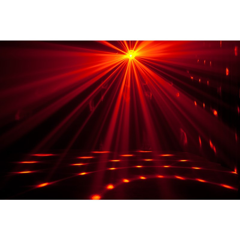 • Light Source: Dome: 6 x 3W LEDs (1 Red, 1 Green, 1 Blue, 1 White, 1 Amber, & 1 UV); Wash: 8 x 1W LEDs ( 2 Red, 2 Green, 2 Blue, & 2 Amber); Derby Effect: 2 x 10W Quad LEDs (RGBW) + Red & Green Laser