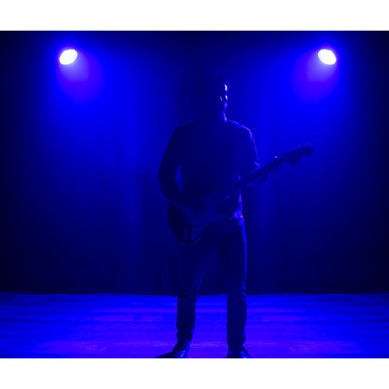 Offering a wide native beam angle of 80-degrees, allowing a large area to be washed with vibrant colored light, the fixture is also supplied with a useful lens kit. This comprises both 40-degree and 50-degree lens options, which easily and securely clip to the front of the fixture to provide a narrower beam angle when required. For easy integration into an existing control system, 5-pin DMX input and output sockets are included on the unit's rear panel. There are also locking power input and output sockets, which can be used to connect up to three fixtures to a single power outlet. It is also supplied with a flexible scissor yoke, which can either be used as a hanging bracket or floor stand, and barn doors for directing the light output are available as an optional accessory. An Omega Bracket is included so that this fixture can be hung vertically as a pendant light.