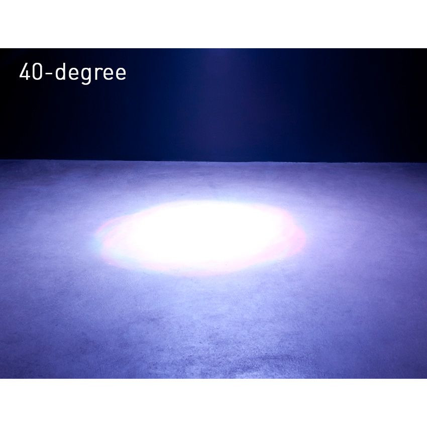 The COB Cannon Wash ST comes in a black casing and has massive 80-degree beam angle. Easily replaceable 40-degree and 50-degree lens are included so that the beam angle may be changed.