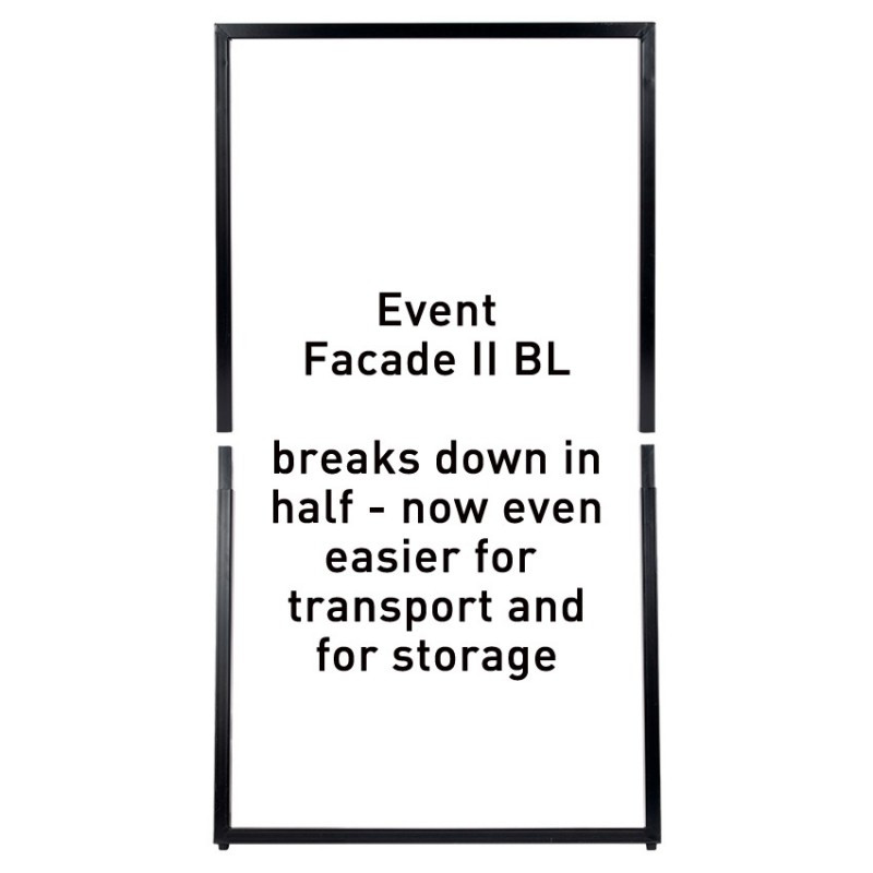 The ADJ Event Facade II BL is a great solution to professionally conceal your equipment and create an elegant professional look at the same time. Perfect for anyone looking for a lightweight, portable, and fast set-up facade to enhance their image. It comes with a black, lightweight, metal frame and black and white scrim. The stretchable fabric panels are easily removable for cleaning or can be interchanged for different black and white color combinations. Transportation and storage is also simple with the included carry bag. No tools necessary to set-up, break-down, or remove the stretch panels. The Event Facade II BL breaks down into four pieces, plus each frame breaks down in half for easy transport.