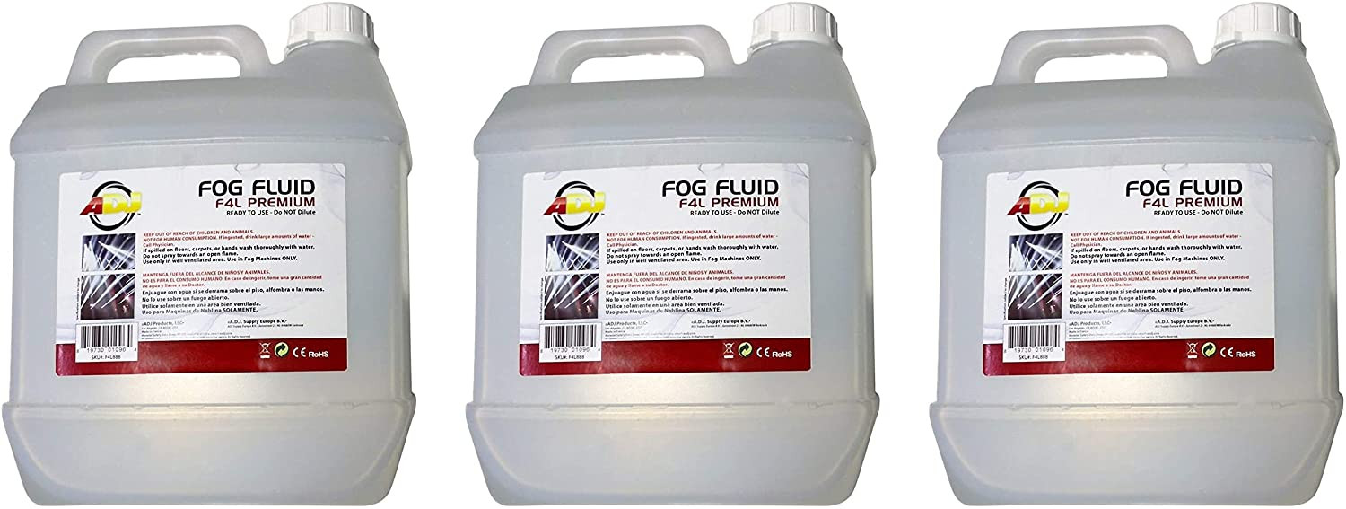 Twelve liters of F4L Premium Fog Fluid from ADJ, designed to make the most of your fog production when used with an American DJ fog machine. Pack consists of 3 4-liter bottles.