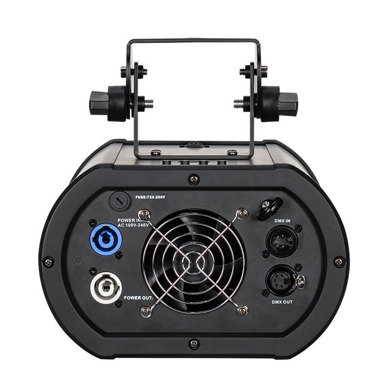 This fixture is equipped with two DMX channel modes and may be controlled via DMX, the included IR wireless remote or from the built-in programs, giving you complete control over your lighting setup. The digital DMX display with a 4-button menu makes navigation easy, while the 0-100% dimming (via DMX) manual adjustable zoom and focusing lens allow you to fine-tune the lighting to your exact specifications.
