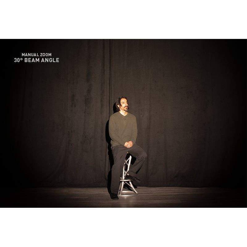 The Par Z100 3K2 is powered by a 100-Watt, 3000K Warm White C.O.B. LED engine with a CRI greater that 90. The 3000K color temperature offers a good approximation to the output of a traditional lamp. There are 5 manual zoom beam angles to choose from: 9, 15, 20, 25 or 30. A traditional par can gel frame is included so that designers can diffusion filter for even more control of the fixture's output.