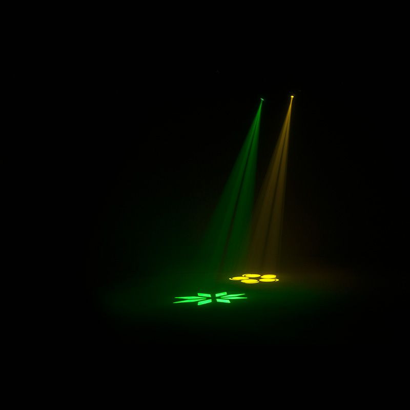 We included a locking power connector so you never need to worry about vibration or not having a secure AC connection. This fixture features seven colors plus white and 7 replaceable GOBOs (plus 4 additional GOBOs included in the box). The GOBOs and colors are on separate wheels. These features are not found in moving heads of this class.