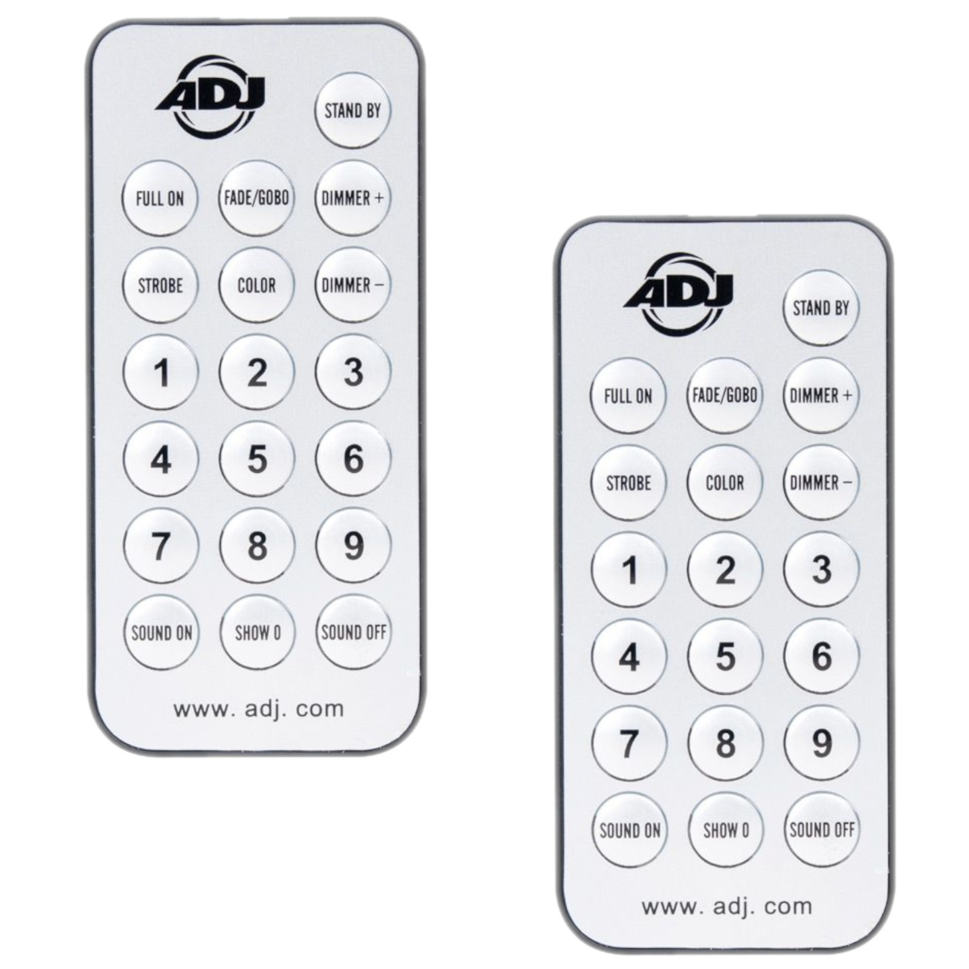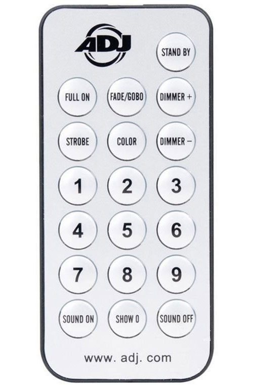 The UC IR infrared remote gives you control of various functions to a variety of ADJ fixtures with "IR" capabilities (check your light's manual for compatibility.) To control the fixture you must aim the remote at the front of the fixture and be no more than 30 feet away.