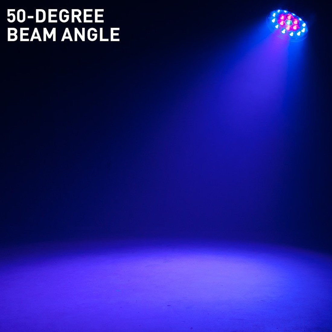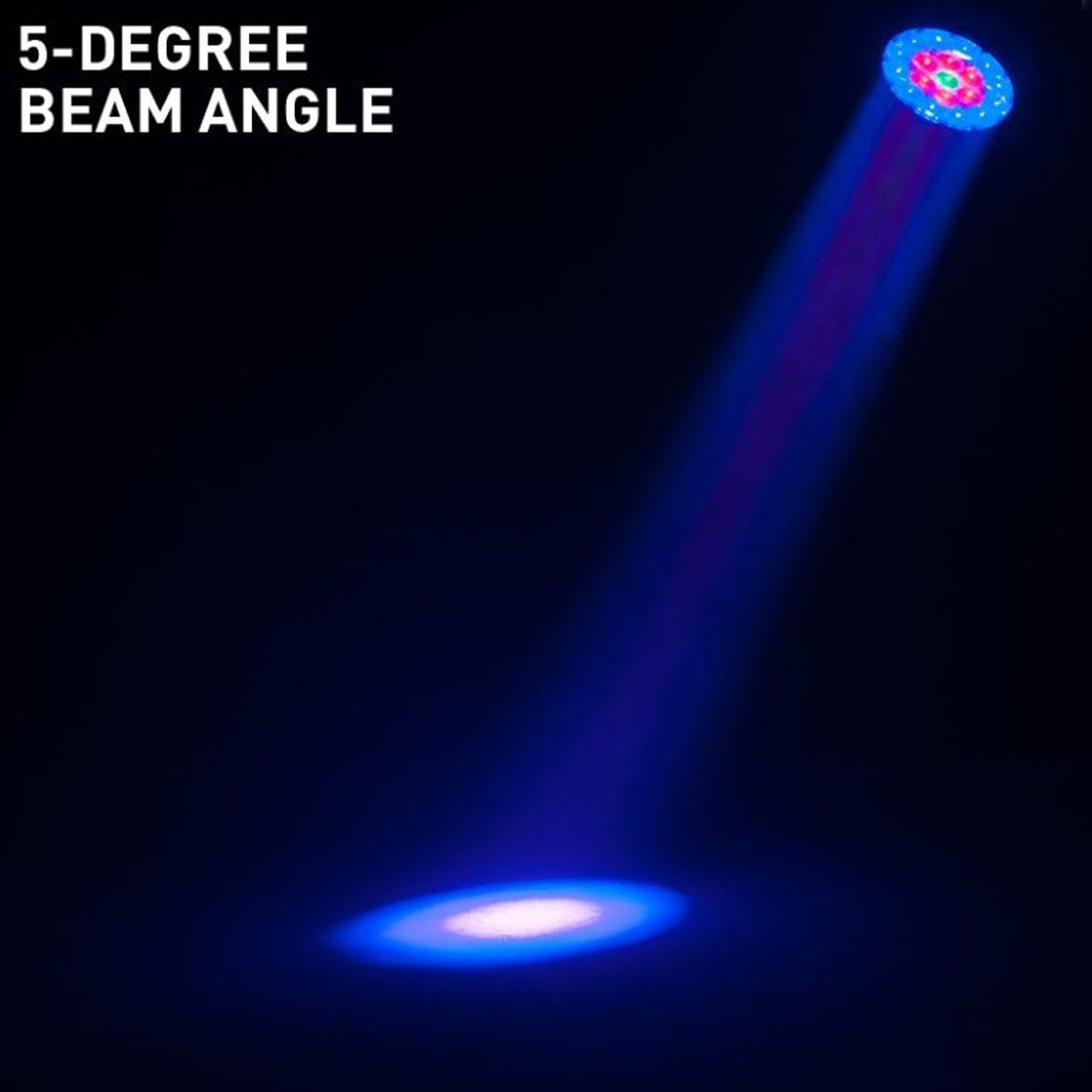 It features motorized zoom from 5 50-degrees, a 3-zone ring control with eye-popping color macros, 3 DMX channel modes, 6 dimming curve modes and a 4-button touch control panel with a large LED display.