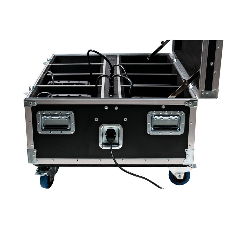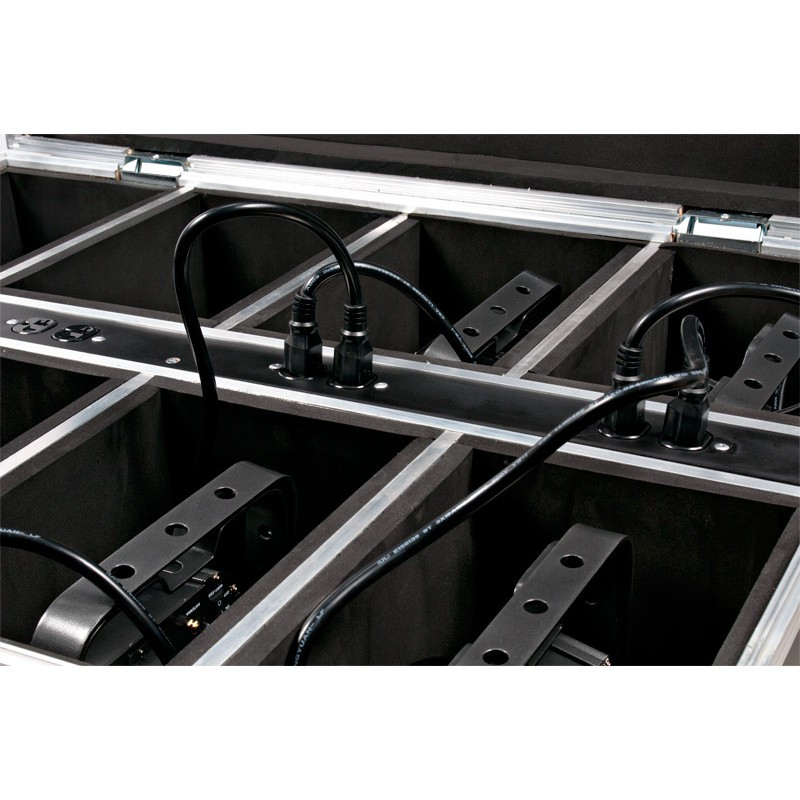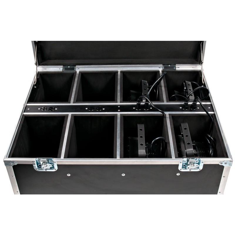 On Closeout. Heavy duty road case for 8 ADJ WiFLY LED Pars with 120V 3-prong Edison charging power plugs. Holds up to 8 WiFLY Pars (WiFLY EXR Hex Par, WiFLY EXR HEX5 IP, WiFLY EXR QA5 IP, WiFLY Par QA5, WiFLY Par QA5 WH, WiFLY QA5 IP, UV 72IP). Charge Pars directly in case from 8 power plugs.