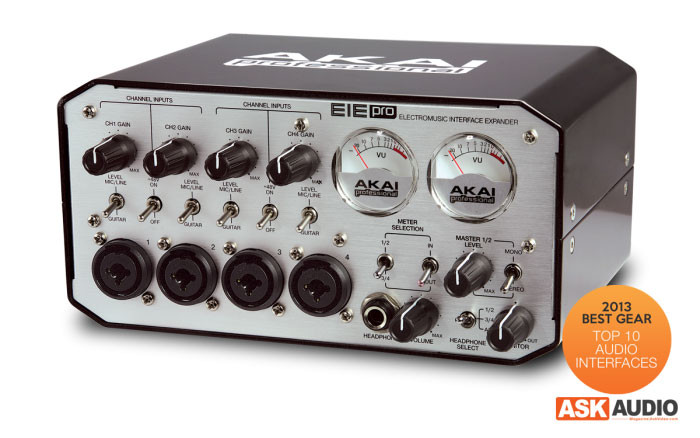 The EIE Pro is a tabletop USB 2.0 audio interface perfectly tailored for your project and portable studio setups. This four-in, four-out (4x4) device features low latency ASIO drivers and enables you to record up to 24-bit resolution and sample rates of 44.1 kHz/48 kHz/88.2 kHz/96 kHz into virtually any DAW, recording or performance software on Mac and PC-based systems. The EIE Pro also houses three convenient USB inputs, in addition to its main USB 2.0 port, enabling you to connect controllers, hard drives or any other peripheral when native ports on a computer may be limited. The compact recording interface contains high-quality components including nickel-plated input jacks, analog-style VU meters and a rugged aluminum casing for a powerful, professional, portable audio solution.