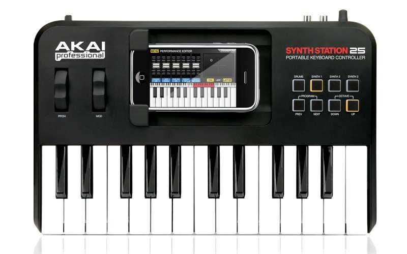 The iPK25 transforms iPhone or iPod touch into a portable music production studio for mobile music creation. This MIDI keyboard controller gives your handheld device a two-octave set of piano keys and professional audio outputs, and it works with the Akai Professional SynthStation Studio app.