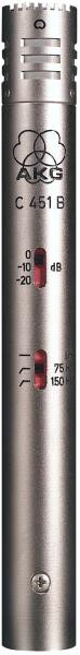 Responding to growing demand, AKG decided to make the C 451 B with the same acoustic performance as the popular original C 451 EB + CK 1, with dramatically improved specifications. Using an extremely light diaphragm, the new C 451 B is almost totally insensitive to handling noise. Other features include an all-metal body for excellent protection from RF interference and high reliability for excellent results under almost all conditions.