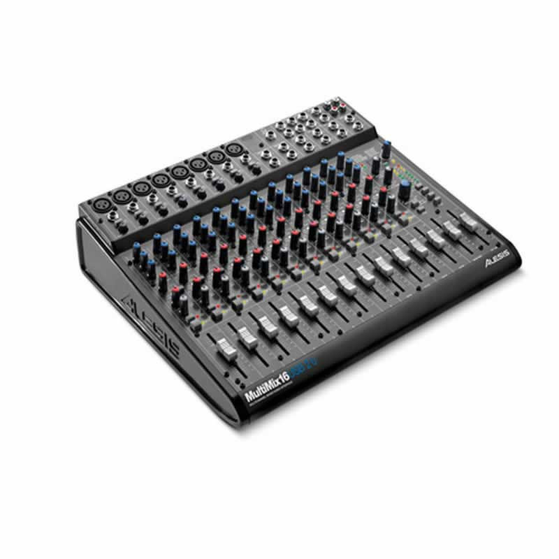 The Alesis MultiMix 16 USB 2.0 mixer provides USB 2.0 technology for ultra-fast, low-latency, 24-bit/44.1-96kHz (with high-end A/D and D/A conversion) multi-channel audio recording straight to your computer. Designed with low-noise analog electronics, the MultiMix 16 USB 2.0 mixer lets users take advantage of 100 studio-grade 28-bit digital effects. Whether used for mobile or studio recording, the MultiMix 16 USB 2.0 mixer makes recording high-quality audio to your computer fast and easy.