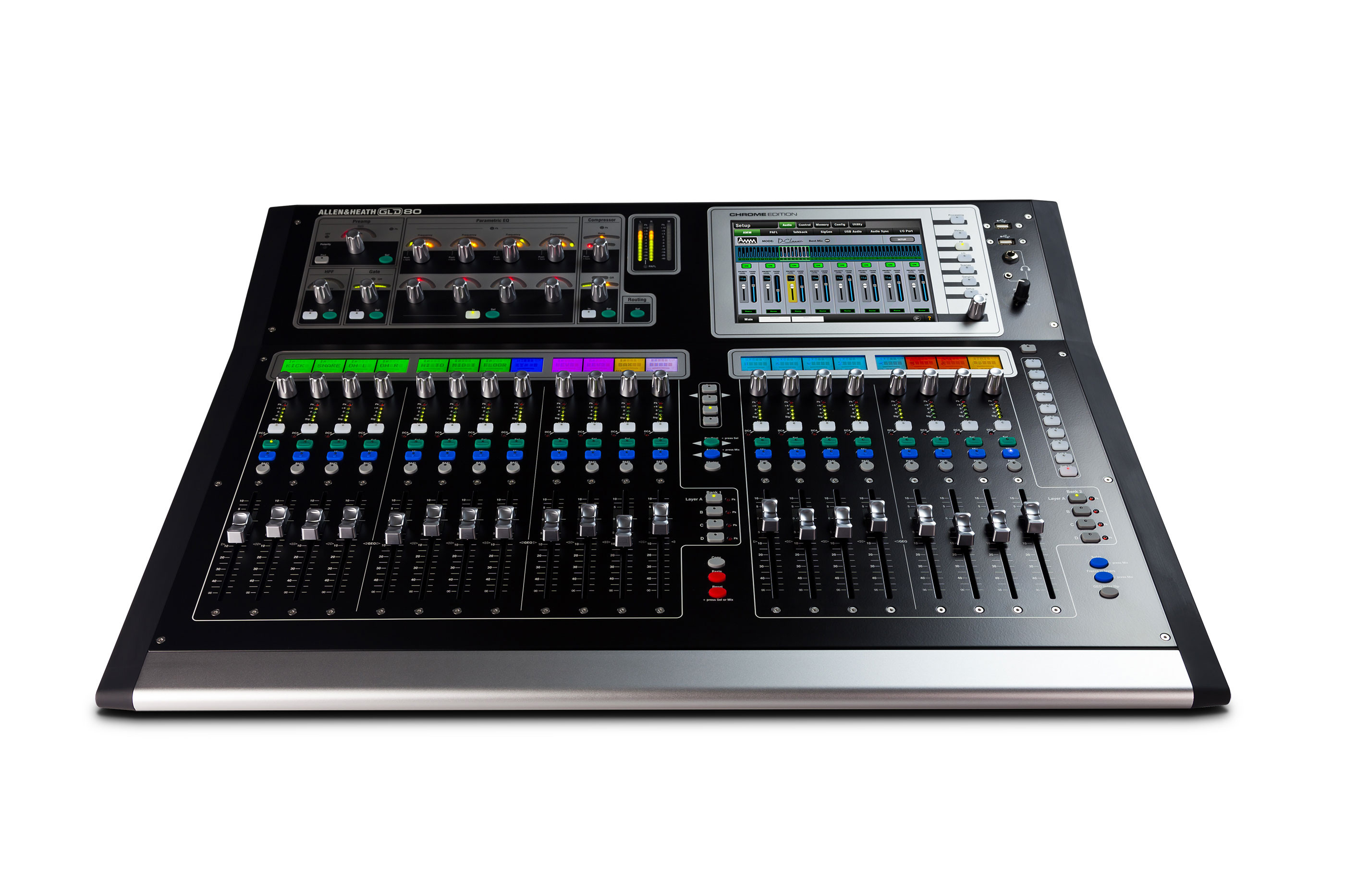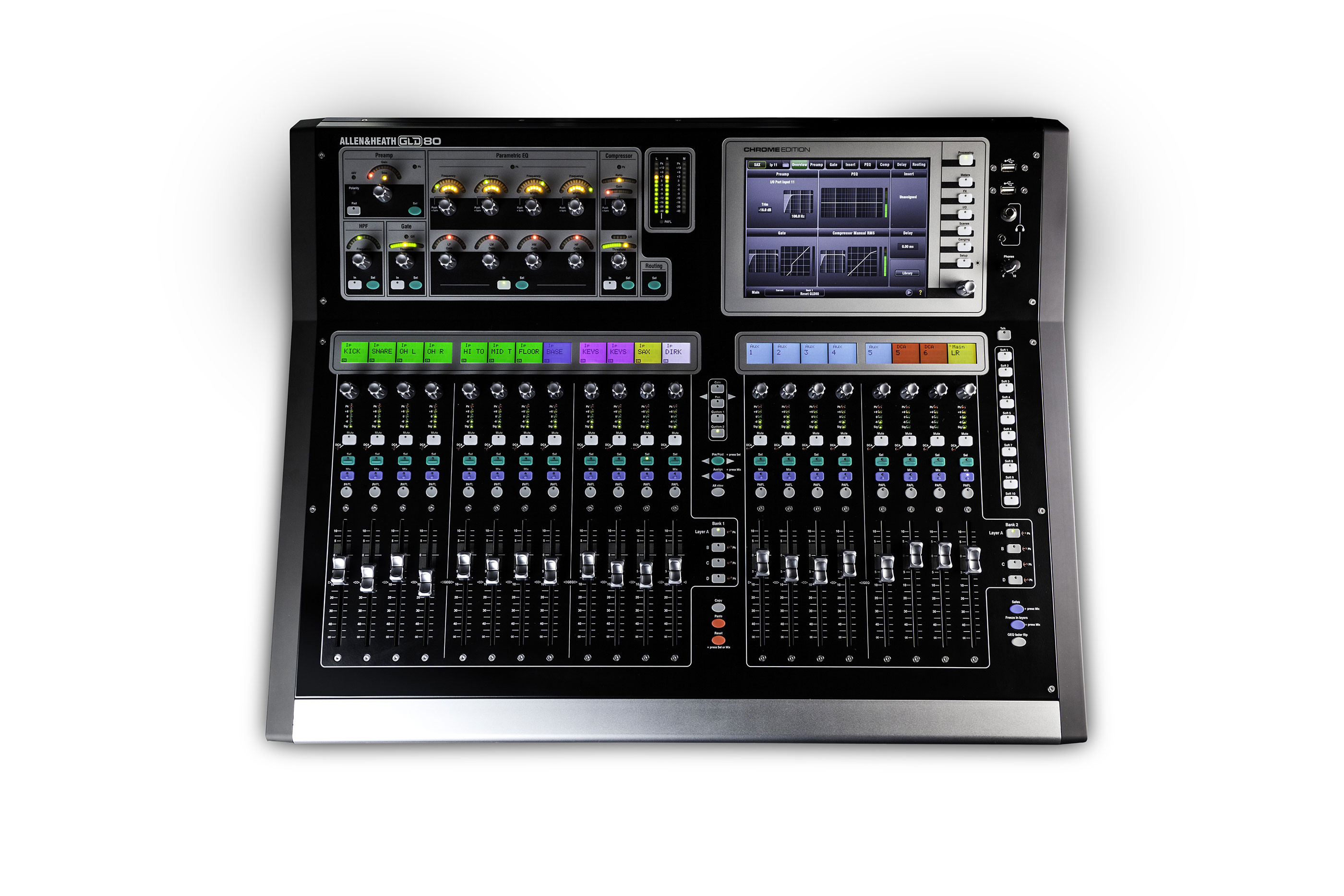 GLD-80 has an analogue-style channel processing control section complemented by a graphical 8.4 inch touch screen. A fully-customisable drag n drop layout allows quick and easy assignment of inputs and mixes to fader strips. There are 20 fader strips in 4 layers, each with motorised fader, a channel LCD display which can be named and colour-coded, plus a rotary control for direct access to gain, pan and aux/FX sends. The mixers local I/O comprises 4 XLR mic/line inputs, 4 XLR line outs, 4 RCA inputs, 2 RCA outputs, and digital outputs in SPDIF and AES3 formats.