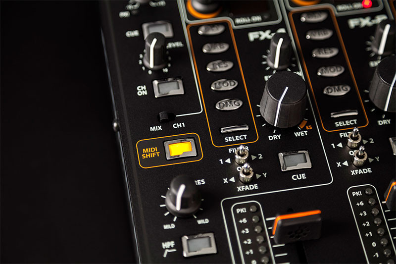 MIDI CONTROLAll controls (except Mic and Phones level) send MIDI data and the mixer can double up as a MIDI controller via the MIDI shift button, allowing the Loop and FX selection controls to send MIDI data without changing the mixer settings. DB4 can generate internal MIDI clock which can be used to control the tempo of a connected DAW via USB and the ability to change the mixers MIDI channel.