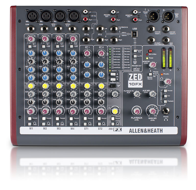 ZED-10FX is an amazing little desk for small band mixing. It is ultra portable for carrying to the gig, and can be used for recording live or in the studio. It comes with configurable USB audio in/out making it easy to capture stereo recordings.