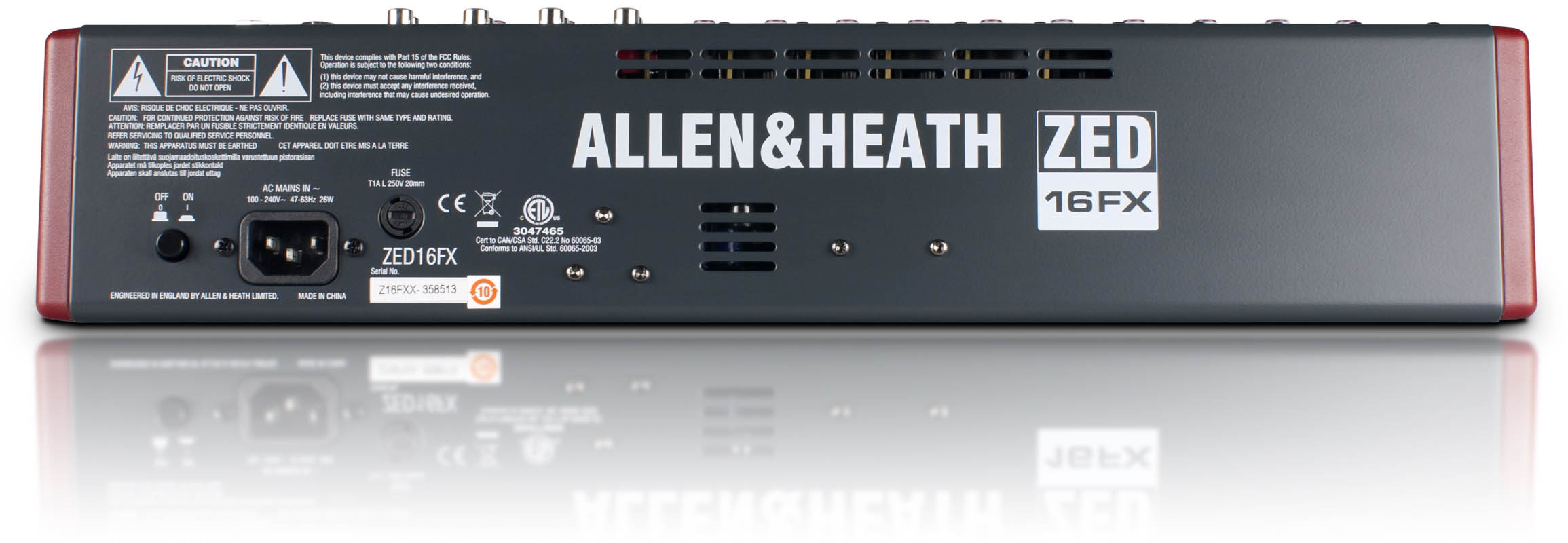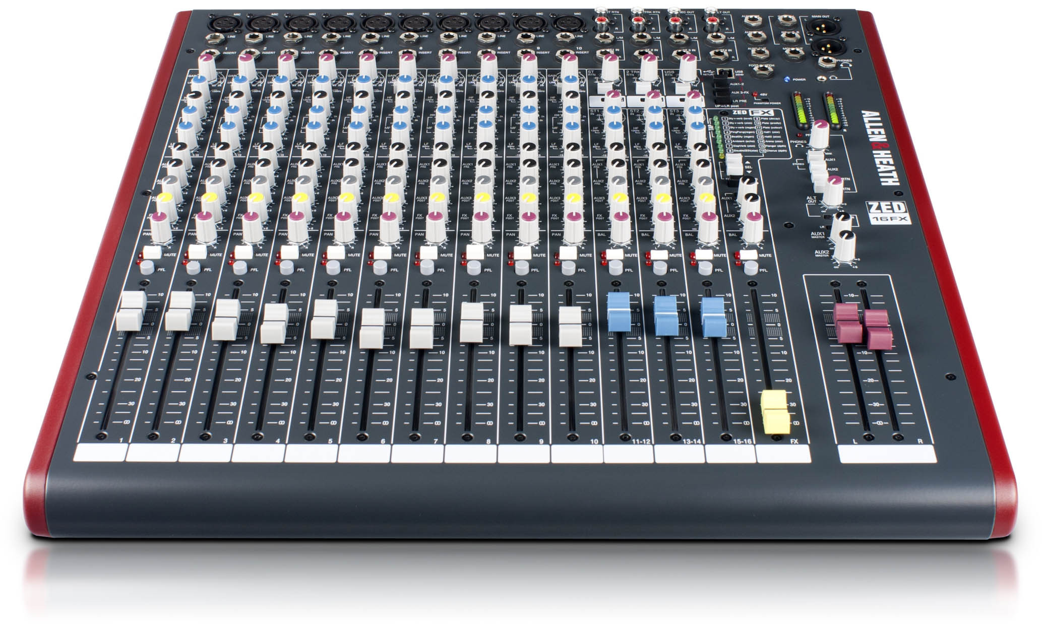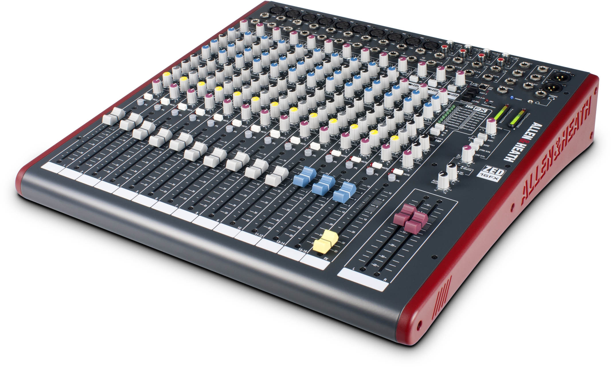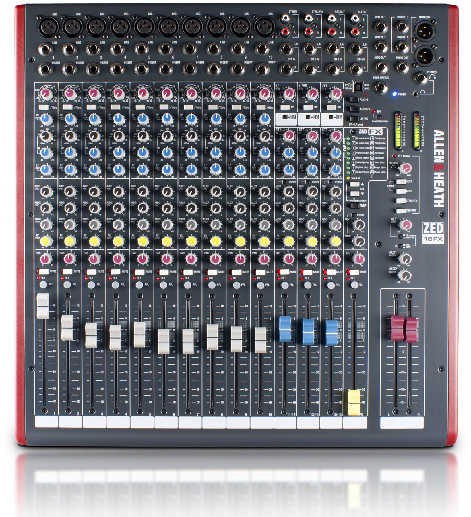 Allen & Heath's ZED-16FX is ideal for groups who need to travel light. It gives musicians, venues and hire companies access to 10 full mono channels, 3 stereo channels and a high quality FX unit in a compact, rack mountable format. Configurable USB audio in/out makes it easy to capture stereo recordings.