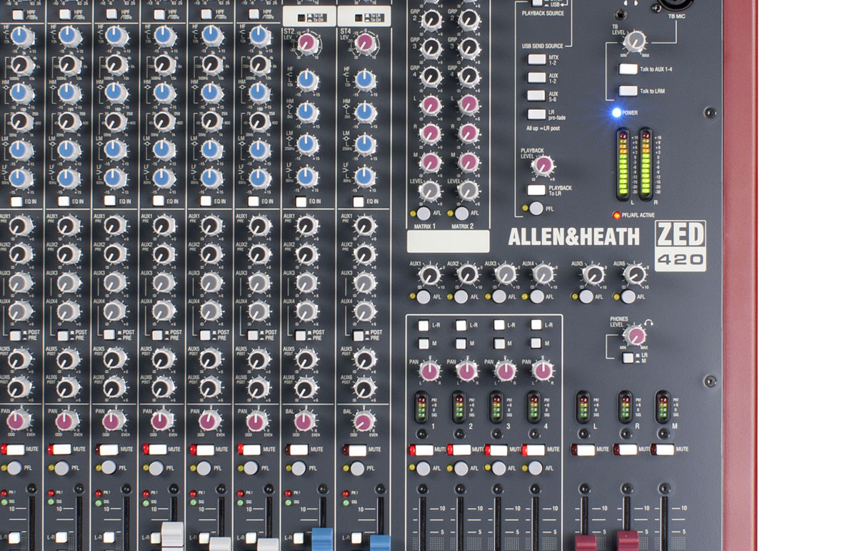 ZED-420 is excellent for bands, houses of worship, theatres or AV applications. It has a truly professional feature set, which will fit any sound reinforcement application and professional PA hire stock. ZED-420 has Configurable USB audio in/out makes it easy to capture stereo recordings, 16 mic or line inputs plus 2 dual stereo inputs, 4-band EQ with MusiQ, 4 sub-groups, 6 auxiliary sends and a 72 matrix.