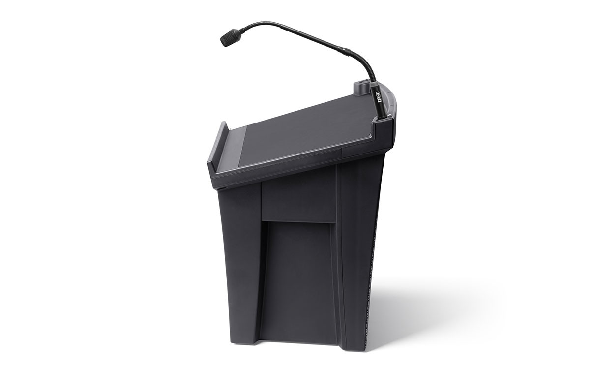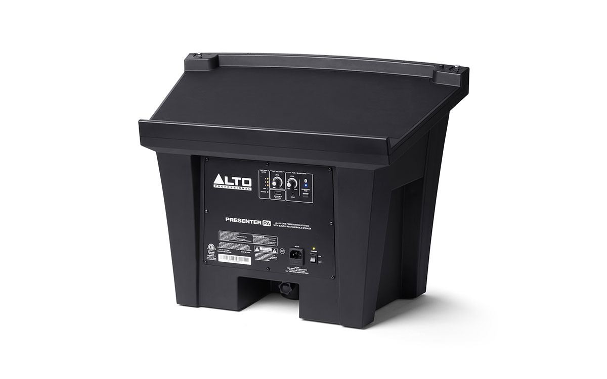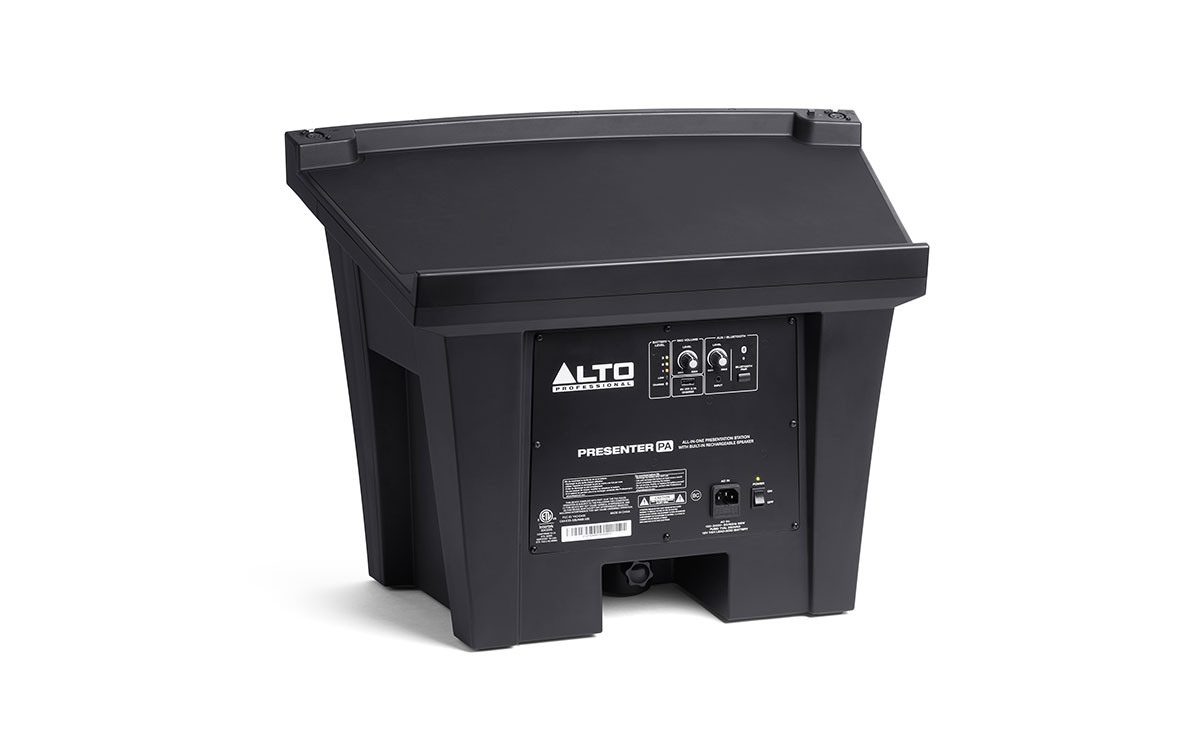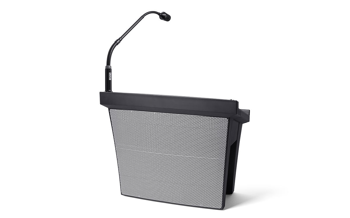 Presenter PA is the ultimate all-in-one presentation station. Sporting a 100w speaker in an attractive table-top lectern form factor, Presenter PA will project your voice for all to hear. Built-in phantom voltage powers the included gooseneck mic via XLR. Adjust the volume on-the-fly with discreet volume and mute controls, pair your personal device via Bluetooth, and never worry about having to find an open wall-socket Presenter PA has a built-in rechargeable battery that delivers up to 33 hours of continuous use.