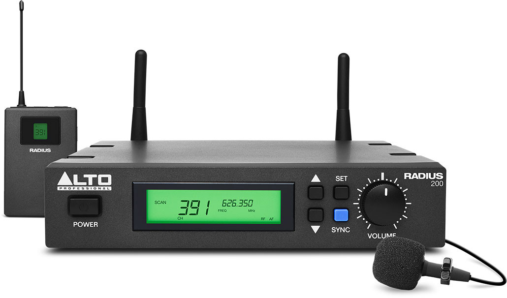 Radius 200L Lavalier Wireless microphone system is an easy-to-use UHF True Diversity wireless microphone system that provides reliable, crystal-clear sound for the most demanding professional vocal applications. Alto's True Diversity receiver design is absolutely state-of-the-art. Radius 200's True Diversity system improves upon the Radius 100, because it utilizes two separate receiver sections as well as two antenna systems. The unit constantly polls both receivers and the signals at the antennae, to instantly and seamlessly select the stronger signal. This is what "bulletproof" wireless microphone performance sounds like.