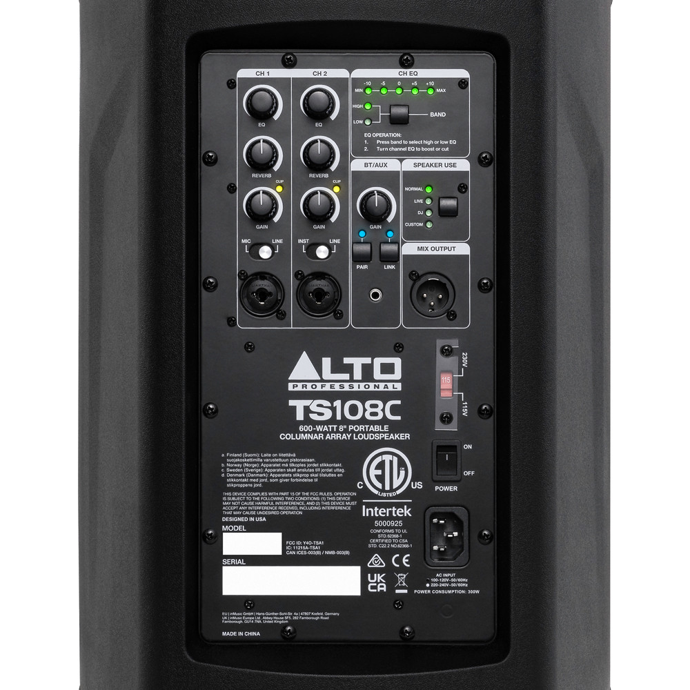Whether a user is performing a solo set in a small caf, leading a high-energy spin class at the gym, or DJing a wedding reception of 200 guests, the TS108C makes setup and on-the-fly sound adjustments effortless with intuitive, hands-on mixer controls. Users can also choose to dial in or further modify their sound via Bluetooth using the included Alto Pro app for a convenient, uninterrupted flow.