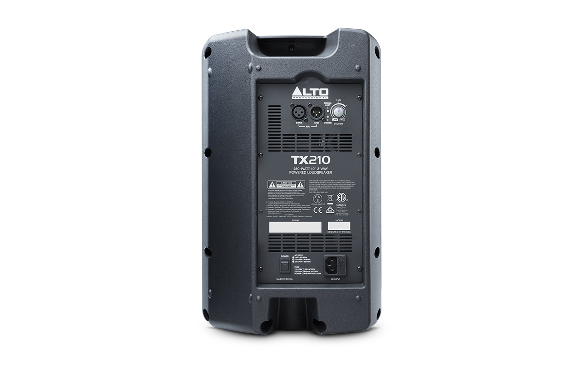 Experience power, performance, and portability. TX210 comes equipped with efficient, bi-amped Class D amplification that pumps out a generous 300 Watts of peak power. An exacting electronic crossover ensures smooth frequency response from the 10" low-frequency driver and 1" high-frequency compression driver. Bass porting offers extended low-end response, while the steel grille adds extra protection.