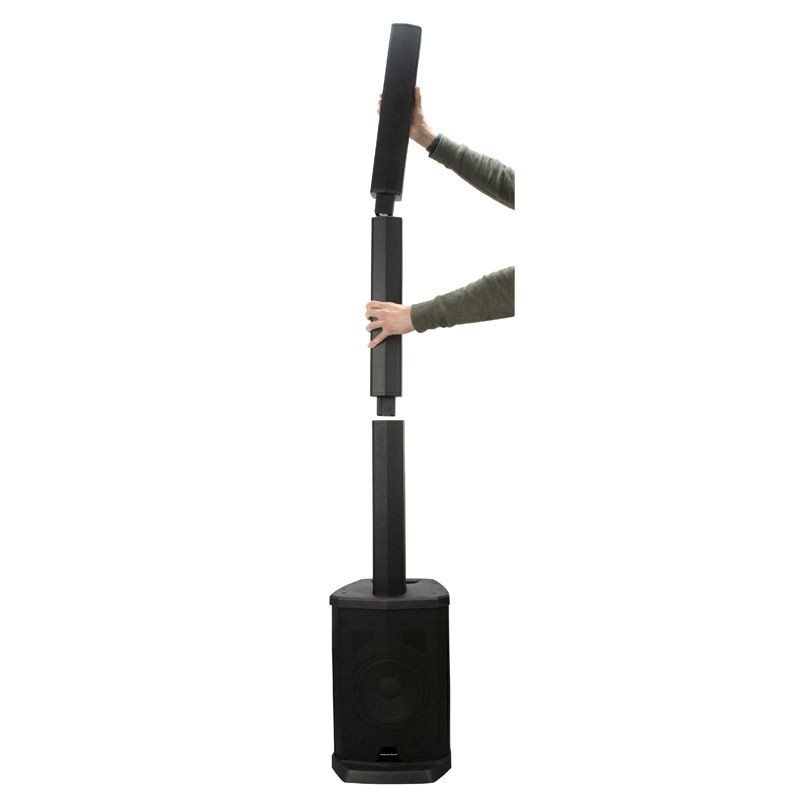 The American Audio APX CS8 AC Powered Column PA System is lightweight, portable and feature packed with a Class -D amplifier, Bluetooth TWS (True Wireless Stereo), and a variety of music playback inputs. The System includes: (1) 8-inch active subwoofer, (1) column speaker with four 2.5-inch drivers, (2) spacer.