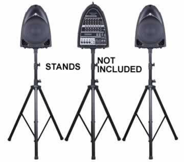 The American Audio PPA210 is a Portable Sound System including: 2x 10-inch portable speakers, 1x Powered Mixer, 1x Dynamic Microphone & all component cables needed!