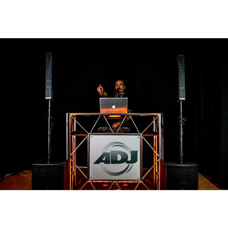 Designed as a professional alternative to folding banquet tables, the ADJ Pro Event Table II is a compact and collapsible unit with a modern clean look. Not only is it lightweight and easily portable, but this cleverly-designed portable event surface is easily brandable, making it ideal for a wide variety of purposes at all kinds of events. If you're currently using a pile of road cases to support your control equipment, or relying on venues to provide tables, this could be exactly what you need to improve professionalism and make your life easier at events. The Pro Event Table II collapses in half for easy transport.