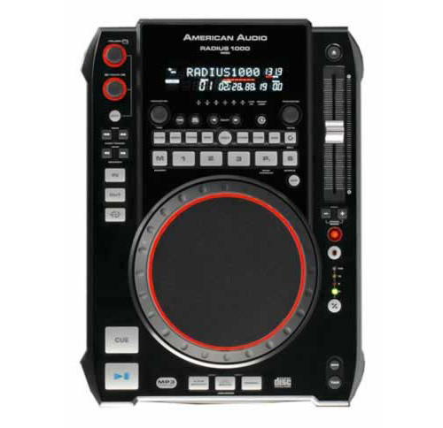 The Radius 1000 can play MP3, CD & CD-R discs. It features a large 6-inch (150mm) jog wheel, 9 on-board FX effects, and a large bright display that shows track titles and artist ID tags.