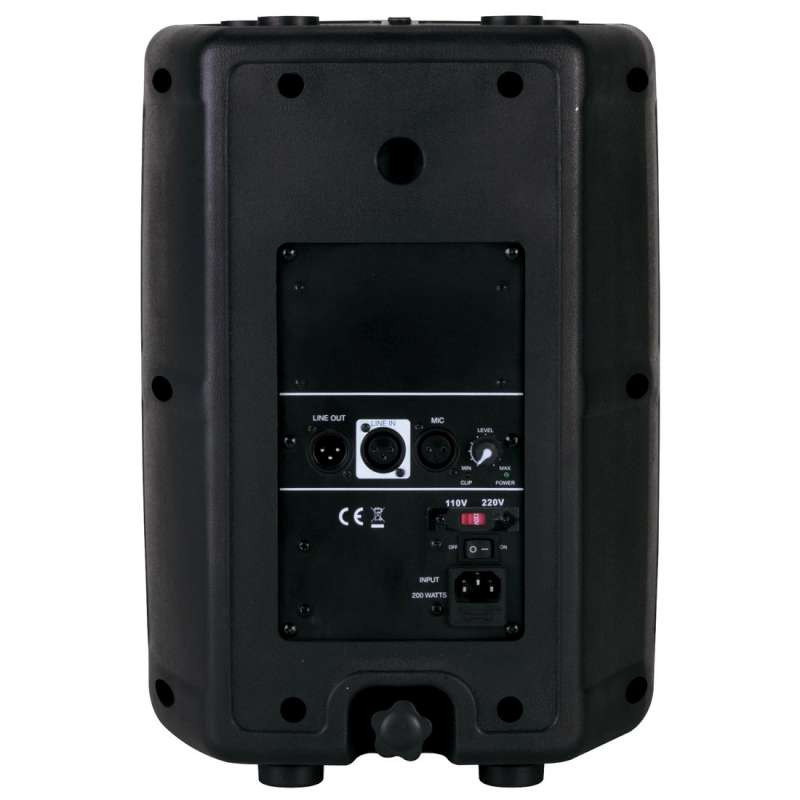 FEATURES:* 8-inch, 2-way Powered Speaker * 100W built-in Bi-amplifier system * Time Aligned Crossover * ABS nylon fiber cabinet with handle * Flyable or Stand Mountable * Full grille * XLR Mic/Line input with Volume Control * Dimensions (LxWxH): 11.5" x 9" x 16.5" / 290x230x420mm * Weight: 18 lbs. / 9 kg.