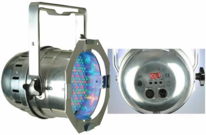 Features & Specifications: • Polish (silver) ultra bright Par 64 with 181, 10mm LEDs (36 Red, 85 Green, & 60 Blue LEDs)