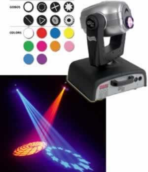 FEATURES:• Automated moving head with 8 DMX channels and rotating gobos.