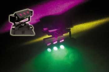 The name is futuristic, but the effect is retro...The Cyclo-Tron is a modern version of a popular 70's disco effect, with 24 colored beams that strobe as the unit rotates. Super bright 750 watt strobe lamp. May be floor or ceiling mounted. Continous 360 head and yoke rotation.