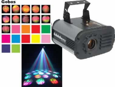 Vibrant scrolling colors projected through 3D glass. Designed to project on walls, ceilings or floors with or without fog. 11 unique cut glass patterns.