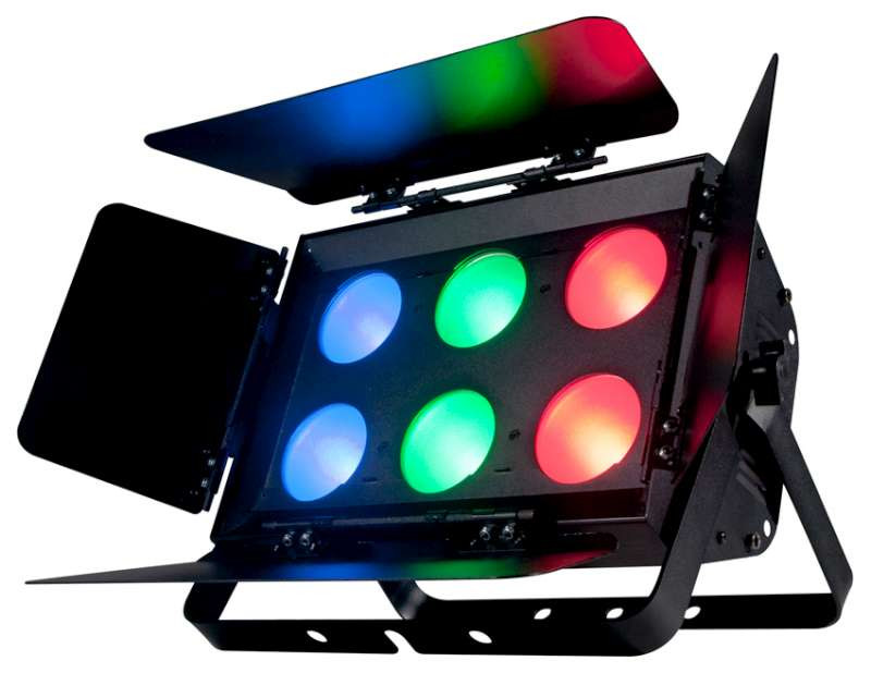 Specifications• Wash/Blinder fixture with six COB TRI LEDs (RGB: 3-IN1): 2 x 3 COB LED matrix panels