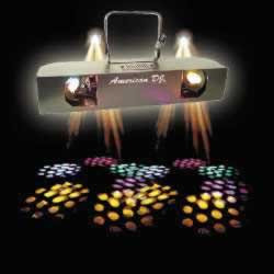 Two lights for the price of one! Two motorized, dichoric mirrored plates spin back and forth projecting gobos in a tunnel pattern. This light covers a very large area. Each head reacts independently to sound. A really great effect at an affordable price!