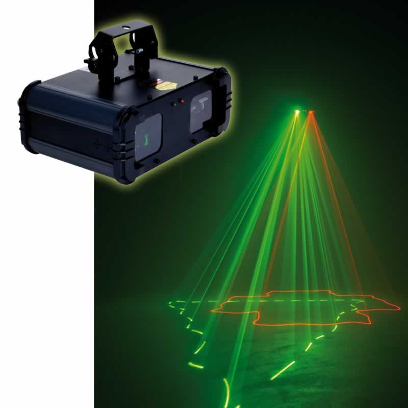FEATURES:• DMX dual scanning lasers with green and red patterns