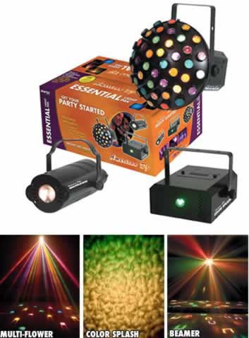 Just the effect lighting package that you need for your next show or gig! this package includes a multi-colored moonflower effect, a water ripple effect light and High-energy sound activated effect light!