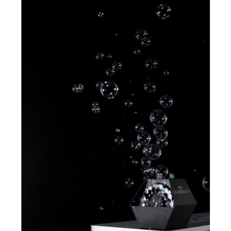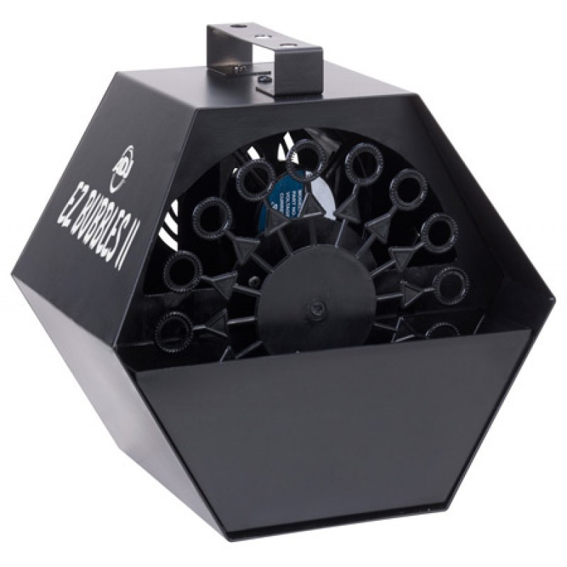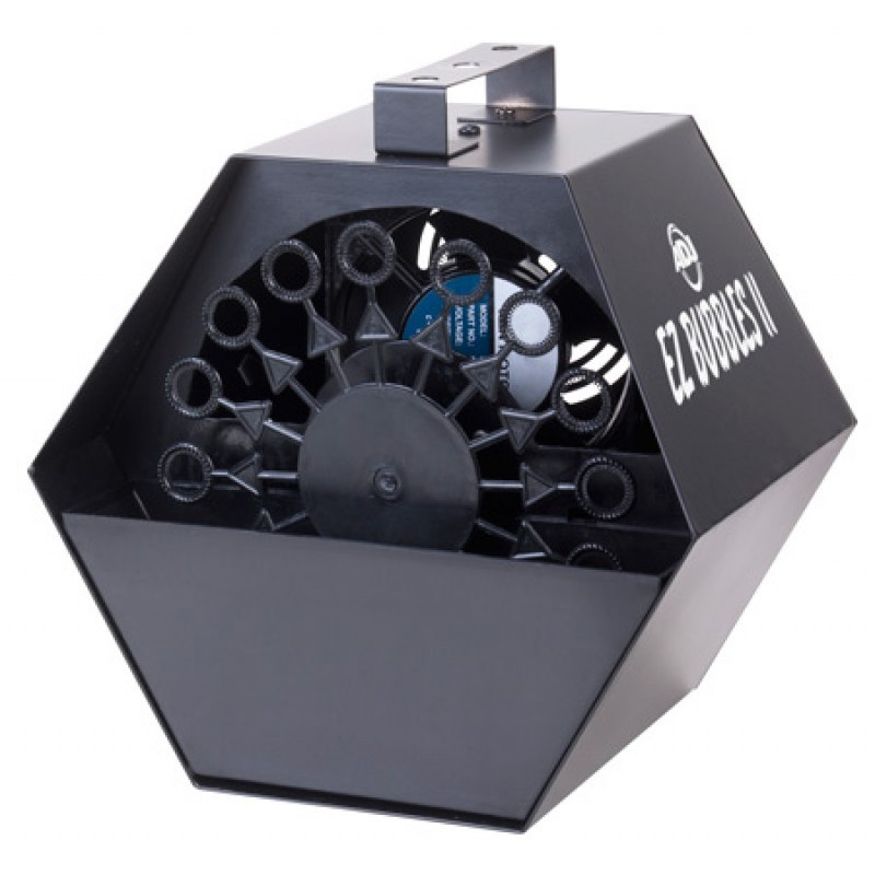 The American DJ EZ Bubbles II in the perfect solution for anyone that wants to create a fun or artistic effect on stage or at a performance. It's very easy to use - as easy as pour in the bubbles and turn on the switch! EZ Bubbles II creates 100's of bubbles per minute from a high velocity, high out put fan and 16 bubble wands. It takes most types of bubble liquids. This portable and light weight bubble machine has a durable rust free plastic housing, can be hung in the air or operates on the ground, and is great for bands, DJs, clubs, bars and small to medium size stages.