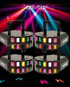 FAB-4 LIGHTING PACKAGE • Each of the included 4 lights have 16 lenses that project 32 static (non-moving) colored beams of light.