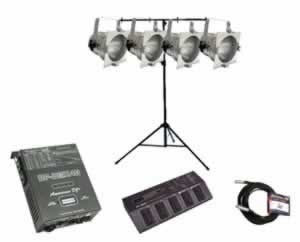 American DJ FC-56 System comes with 4-P-56, 1-DP-DMX4B, 1-FC-400, 1-MC-25, and 1-LTS-6.