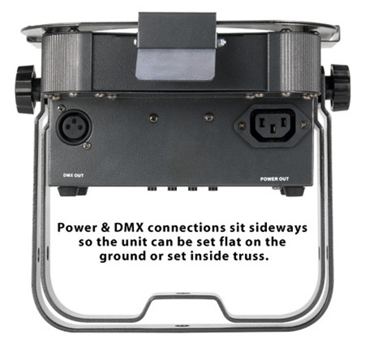 • Power & DMX connections sit sideways so the unit can be set flat on the ground or set inside truss