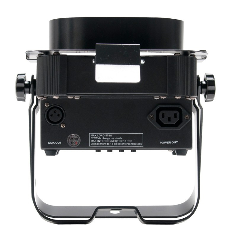 • Unique "sit flat" design Power & DMX Ins/Outs are intelligently designed so the unit can be set flat on the ground or set inside truss