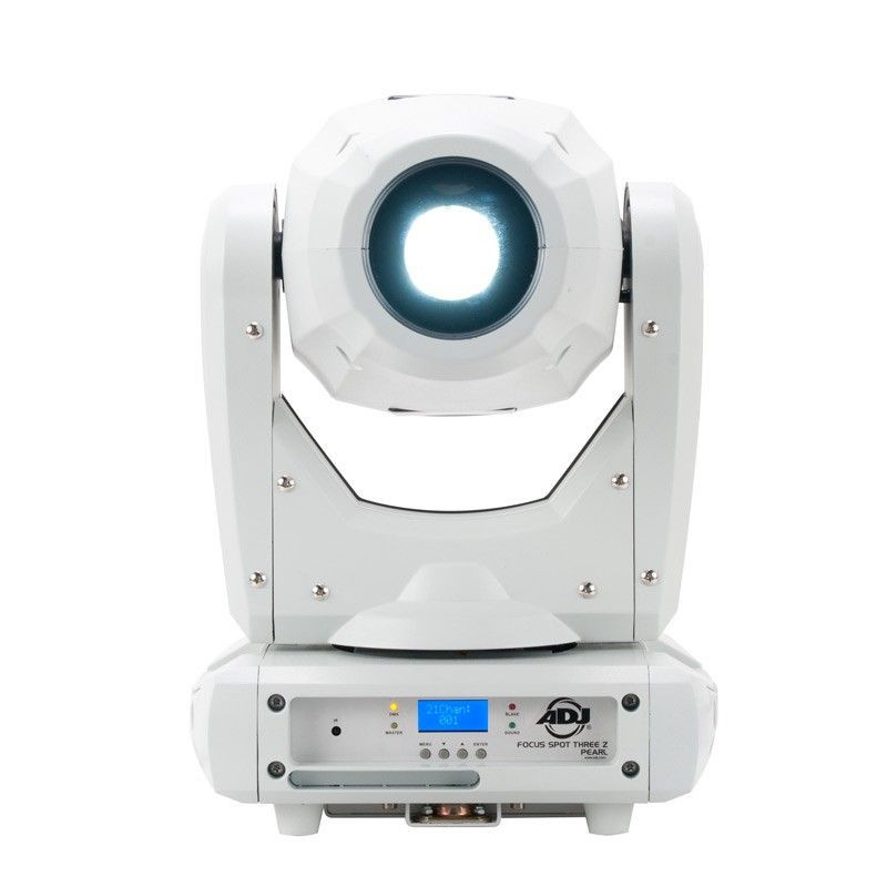 The ADJ Focus Spot Three Z Pearl is a 100W LED Moving Head with white casing. It features motorized focus and motorized zoom allowing for a variable beam angle from 12 18-degrees. In addition, ADJ has fitted the Focus Spot Three Z Pearl with one rotating GOBO wheel, one fixed GOBO wheel and one color wheel, letting users generate unique patterns and effects in a series of vibrant hues. There are two 6-facet prisms (one circular and one linear), enabling spellbinding multi-beam effects capable of filling wide spaces with color and movement.