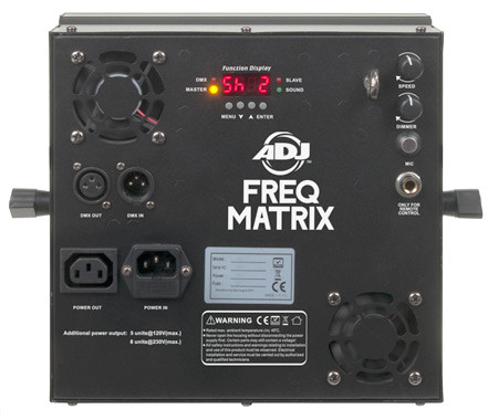 The FREQ MATRIX offers full DMX control with 4 DMX channel modes, dimming, strobe speed and chase speed. Users can also run the FREQ MATRIX in sound active mode, or manually control strobe speed and dimming on the back of the unit from it's potentiometer knobs.