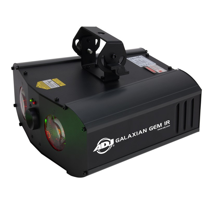 ON CLOSEOUT - LIMITED QUANTITIES AVAILABLE The ADJ Galaxian Gem IR is a 2-FX-IN-1 lighting effect with Dual RGBW LED Moonflowers plus a "Galaxian style" effect with 100's of green beams all in one case. This effect offers small clubs and mobile entertainers the convenience of having multiple effects in one light show without having to transport multiple fixtures.