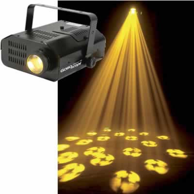 Tantalizing "kaleidoscope type" effect utilizing 17 gobo/color combinations. High-output 250 watt lamp produces bright color projections for walls, ceilings or floors.