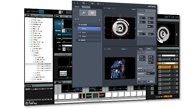 Manipulate, trigger and mix video clips with sound, animated text strings or live cameras in much the same way as mixing music to create a spectacular audiovisual show. GrandVJ can mix up to 8 layers with a vast library of video effects, transitions and sound driven visual generators.