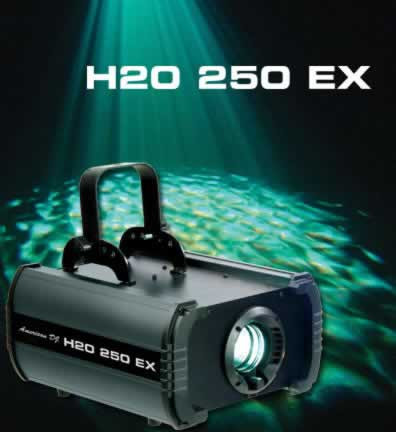 High powered, 250W halogen, simulated water flowing effect. Designed to project on walls, ceilings or floors with or without fog - great for mood or background lighting. Equipped with 2 effect wheels and 1 independent dichroic color wheel. High-tech plastic molded ends protect unit during transport and day-to-day use. Improved optics and color saturation. 2 operational modes: seamless scrolling colors or static color operation. Large fan keeps the unit cool for all night continuous operation (no duty cycle.)